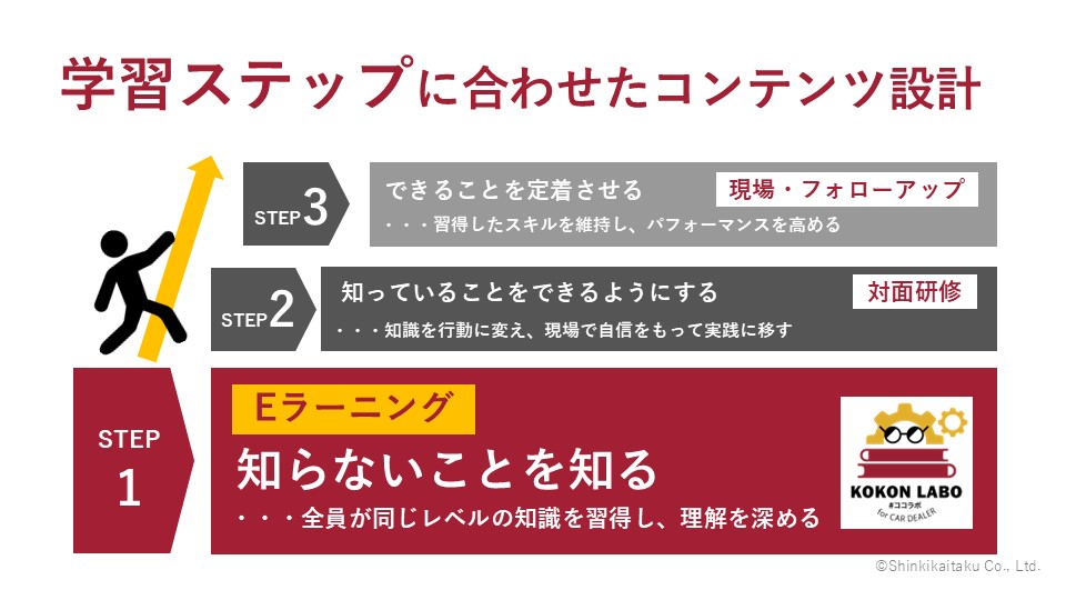 とはいえ、時間や費用をかけた従来の集合研修だけでは、急激な社会変化や個々のバラつきに対応しきれません。そこで誕生したのが、 自動車販売店のための新しいEラーニング#ココラボです!