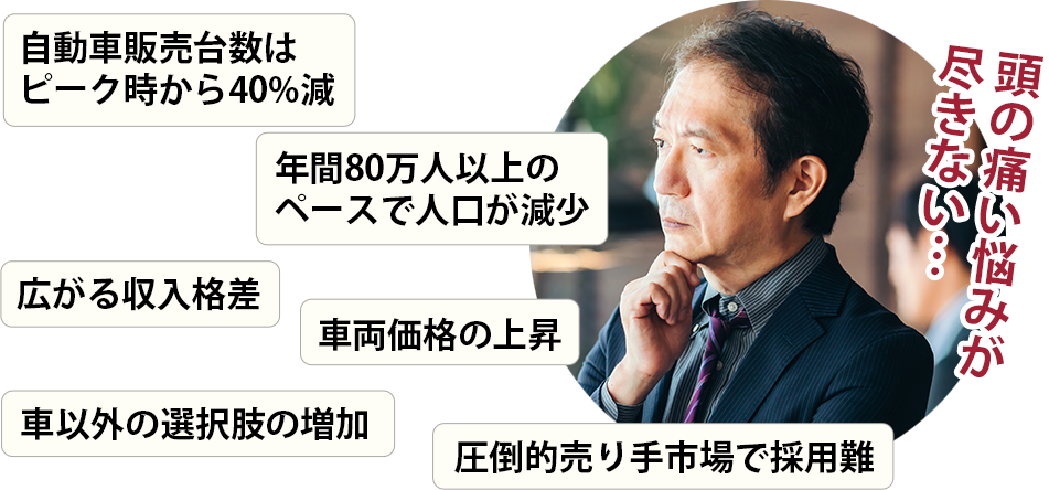 人口減少や若者の車離れなど、自動車ディーラーを取り巻く環境は一層厳しさを増しています。