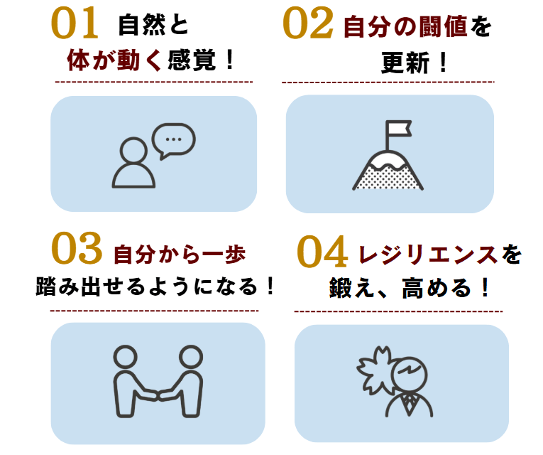 厳しいプロセスではありますが、実際に「できた」という成功体験が、実際の仕事場での自信ある振る舞いに繋がります。