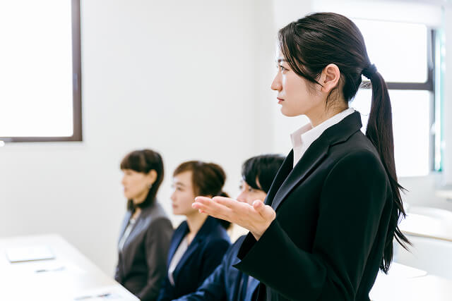 相手に好印象を与える話し方、言葉遣いから、声と連動する表情の作り方にもこだわって指導します。